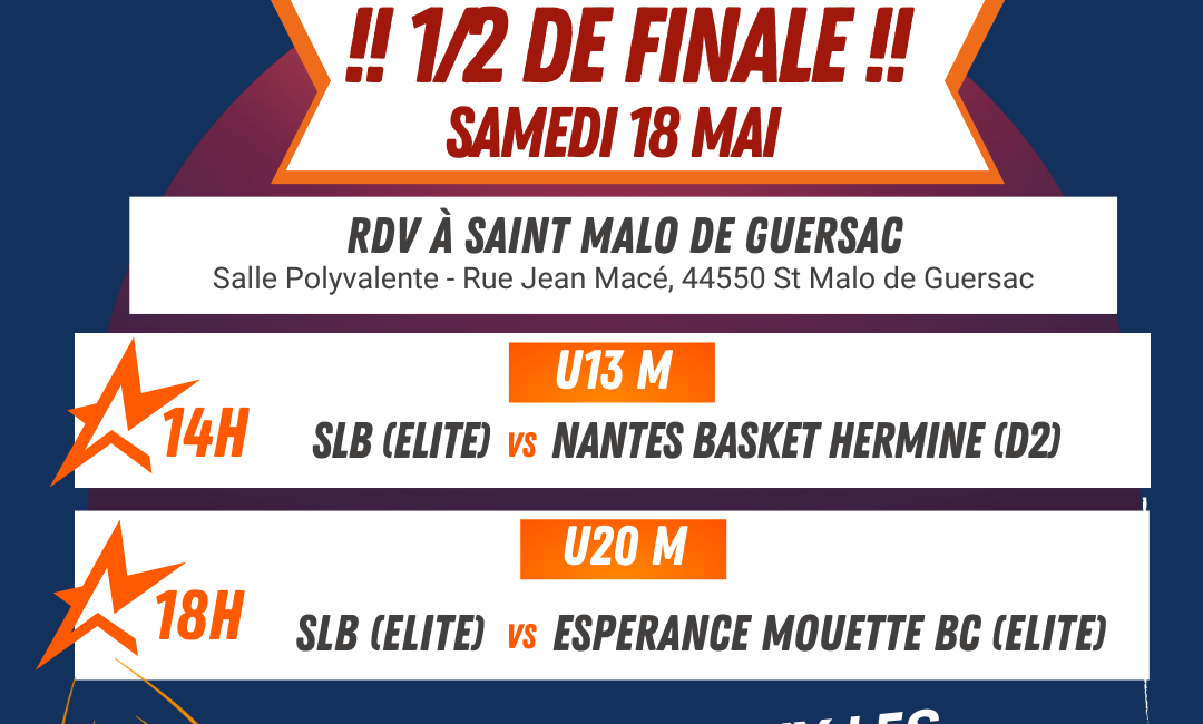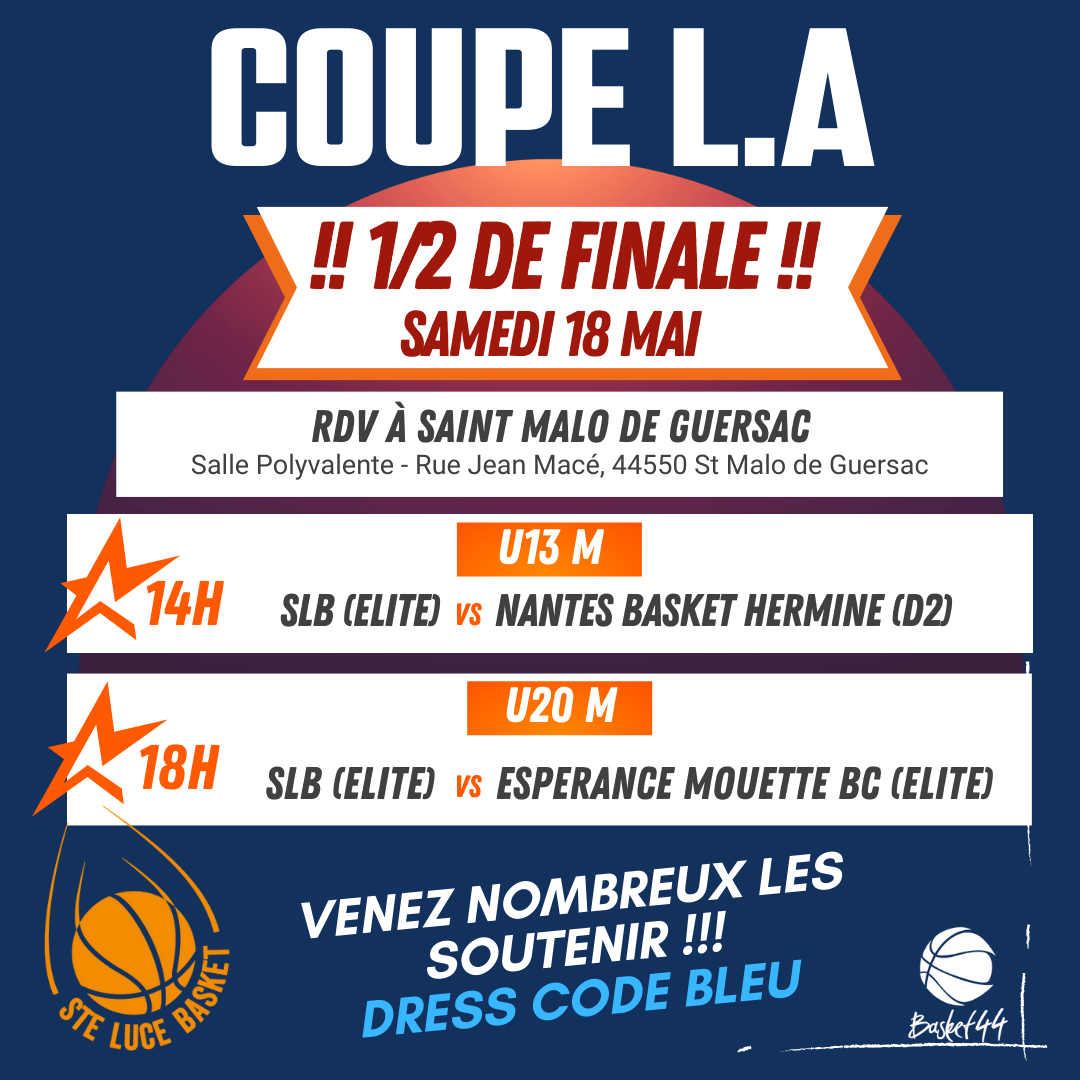 Nos U13M1 et U20M1 jouent en 1/2 finale de la Coupe de Loire-Atlantique samedi 18 mai 2024.