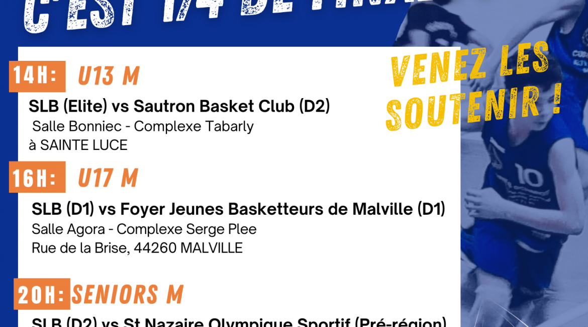 Nos U13M1 (ÉLITE), U17M1 (D1), SENIORS (D2) sont toujours en lice pour accéder à la 1/2 finale de coupe de Loire Atlantique…