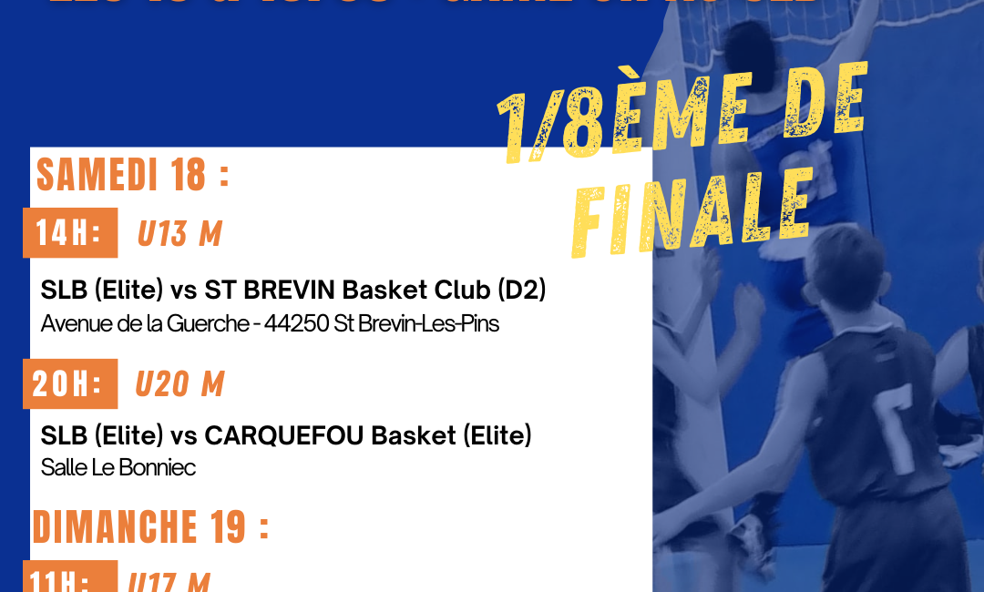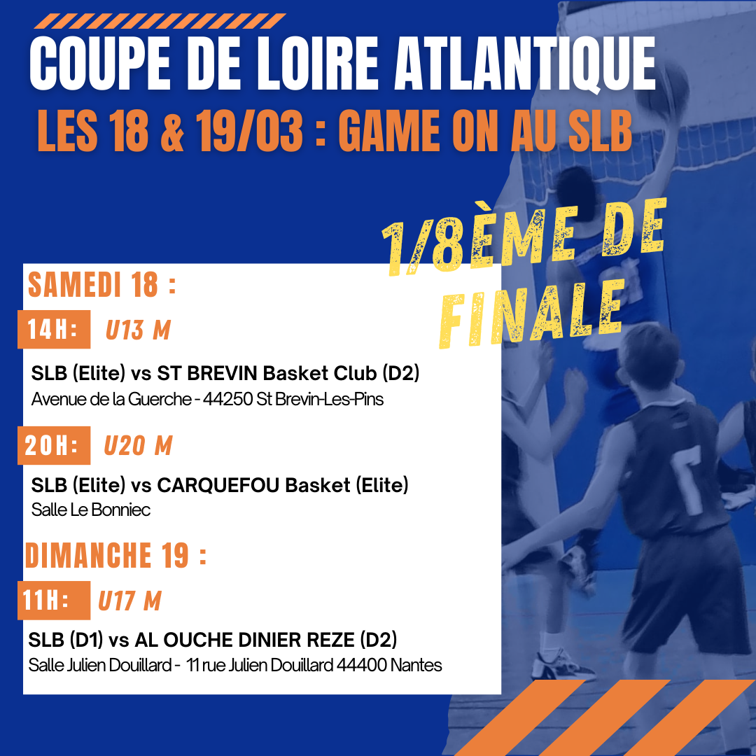 Nos U13M1 (ÉLITE), U17M1 (D1), U20M (ÉLITE) sont toujours en lice pour accéder au 1/4 de finale de coupe de Loire Atlantique…