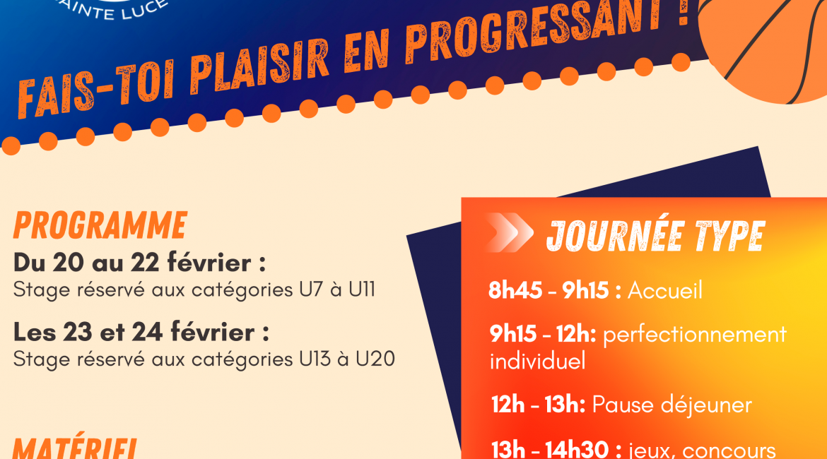 Les inscriptions à notre stage d’hiver pour les catégories U7 à U20 (salle Marcel le Bonniec) sont ouvertes.