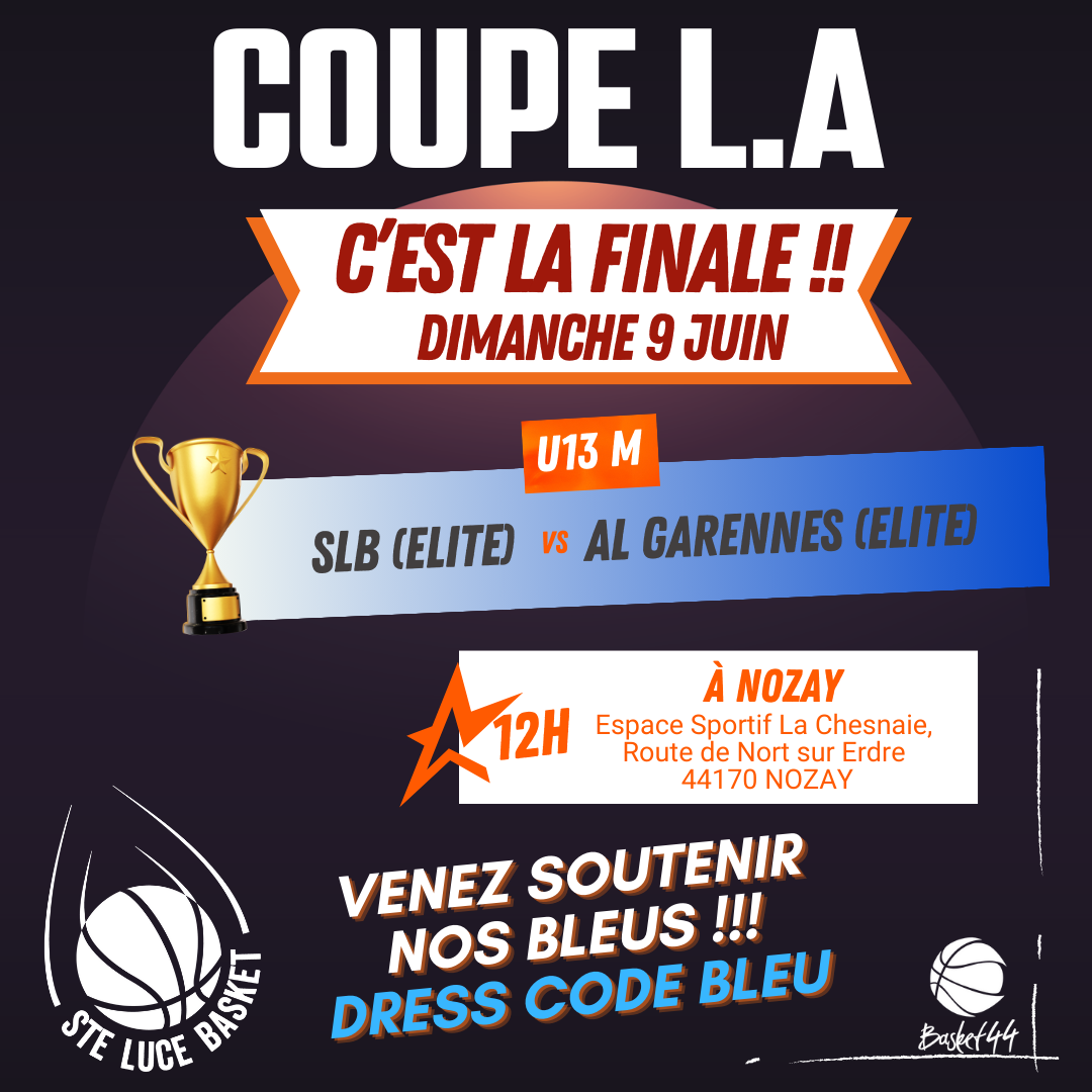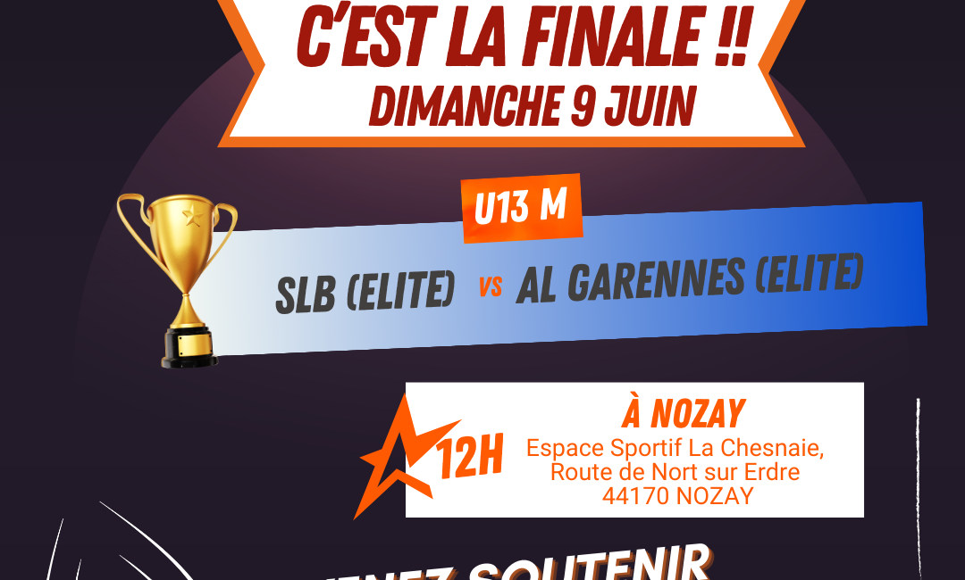 Nous y voilà ! Nos Champions, les U13M Élite jouent leur finale de la Coupe de Loire-Atlantique ce dimanche 9 juin 2024 à 12h.