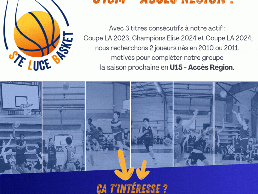 Nous recherchons deux joueurs nés en 2010 ou 2011, motivés pour compléter notre groupe la saison prochaine en U15M – Accès Région.