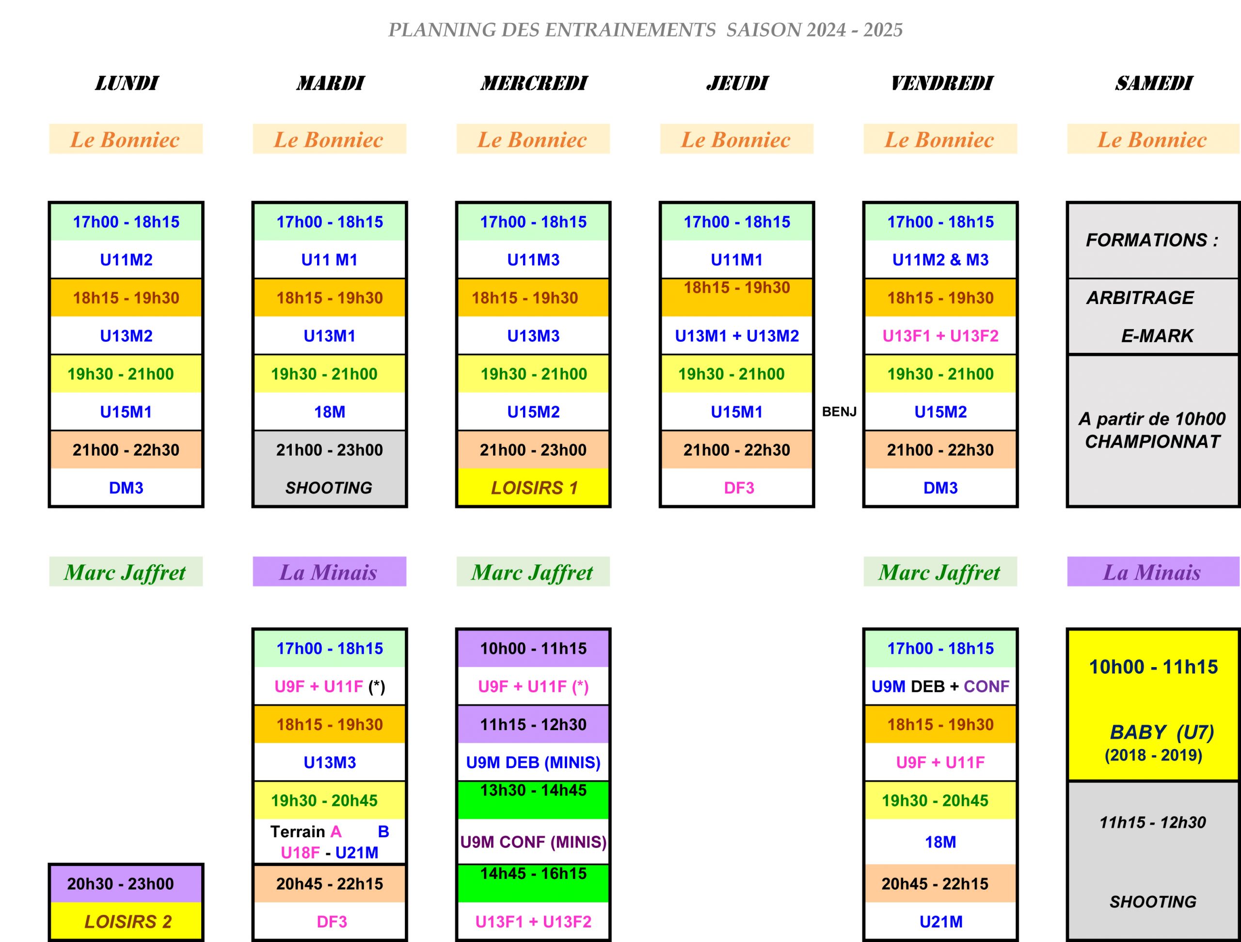 Vous pouvez dès à présent consulter le planning des entraînements pour la saison 2024/2025.