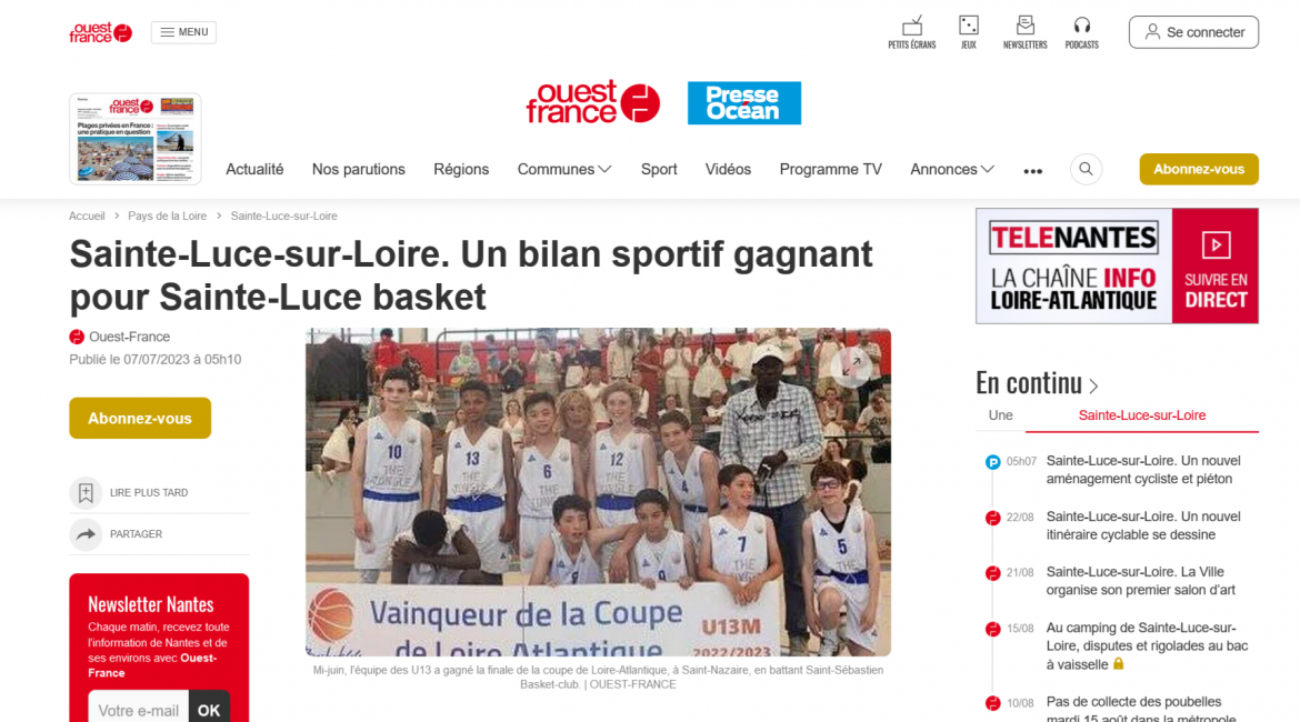 Les moins de 13 ans masculins ont ouvert le bal, le 10 juin, en allant chercher la victoire contre le Saint-Sébastien basket-club, lors de la finale de la coupe de Loire-Atlantique, indique Audrey Bernardin, responsable communication.