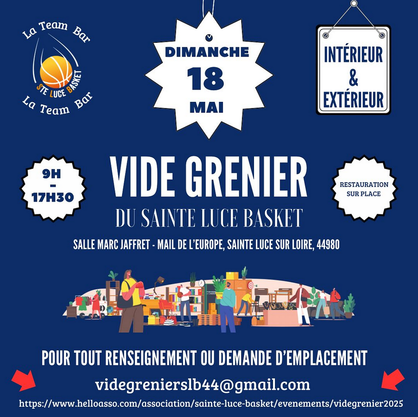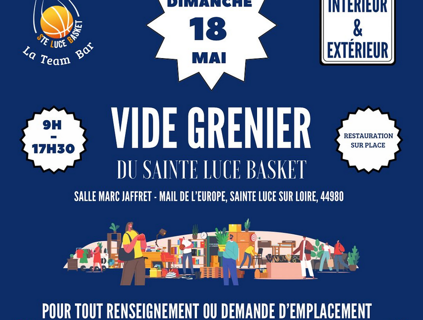 Le Sainte Luce Basket organise son traditionnel vide grenier le dimanche 18 mai 2025 de 9h00 à 17h30.