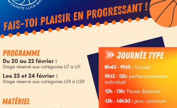 Viens t’entraîner avec nous et booste ton niveau en basket ! Les inscriptions au stage...
