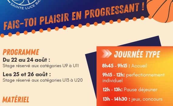 Les inscriptions à notre stage d'été pour les catégories U9 à U20 (salle Marcel le...